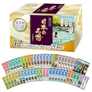 日本の名湯 20種類(粉末にごり湯、粉末透明湯、炭酸透明湯)を詰め合わせた温泉タイプの入浴剤の大容量アソートです。人気のアソート「至福の贅沢」が2個、「にごり湯の醍醐味」「ととのう湯旅」が1個ずつ入った20種類計52包入りの大容量です。